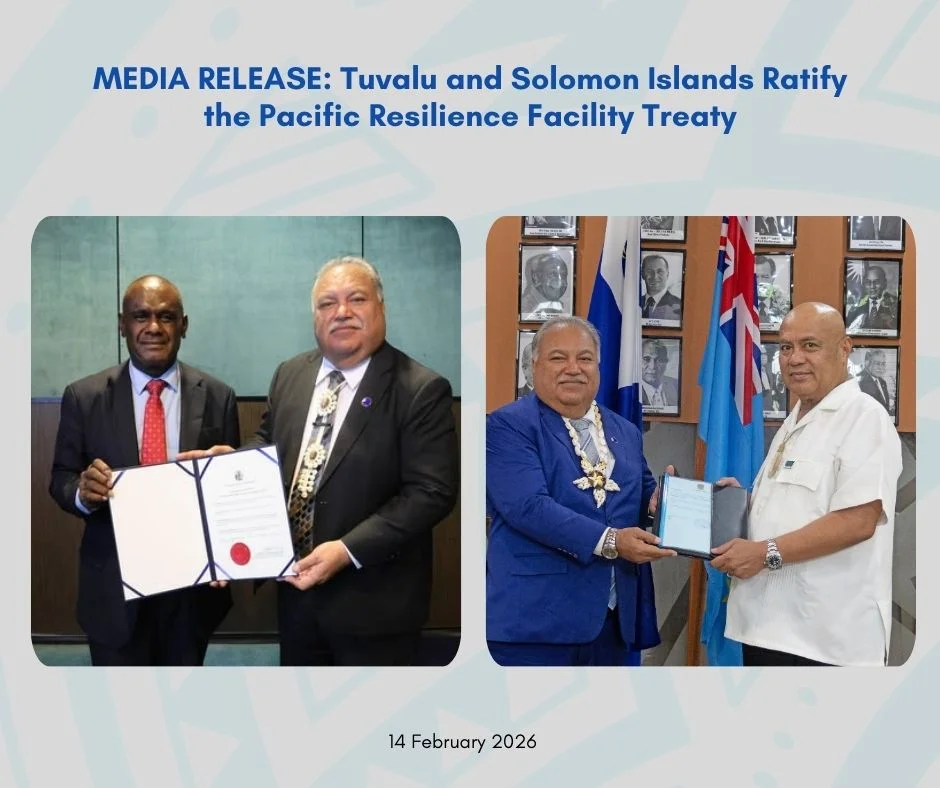 Tuvalu and Solomon Islands have formally deposited their instruments of ratification of the Agreement to Establish the Pacific Resilience Facility (PRF Treaty), moving the Blue Pacific region closer to operationalising its first Pacific-led, member owned and managed, and people-centred climate and disaster resilience financing institution.